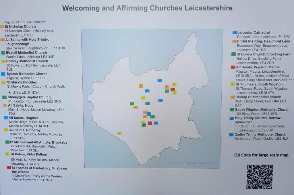 Since this map was used, there have been several churches who have joined Inclusive Church in Leicestershire.